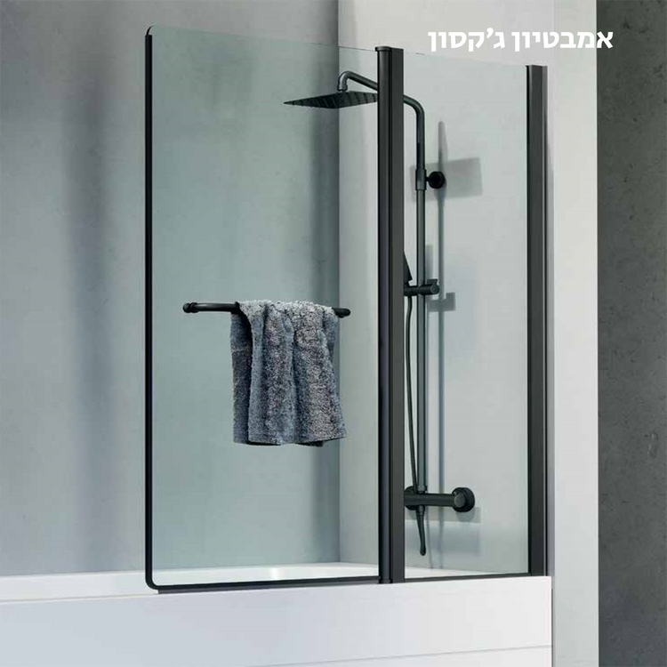 אמבטיון חזית בגימור שקוף, דופן קבועה בשילוב כנף הנפתחת פנימה או החוצה.